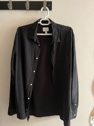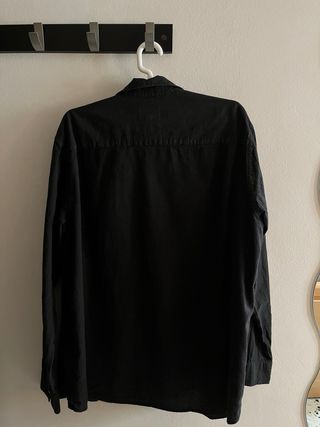 Camisa de lino en color negro. Diseño clásico con botones frontales y cuello camisero. En perfecto estado. Envío o entrega en mano en Conde de Casal (línea 6). Pd: publicado también en otras plataformas.