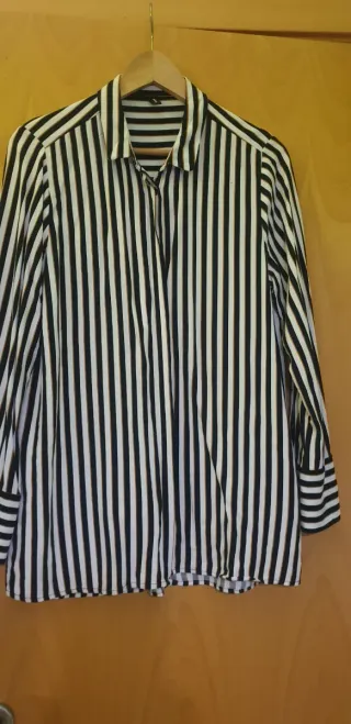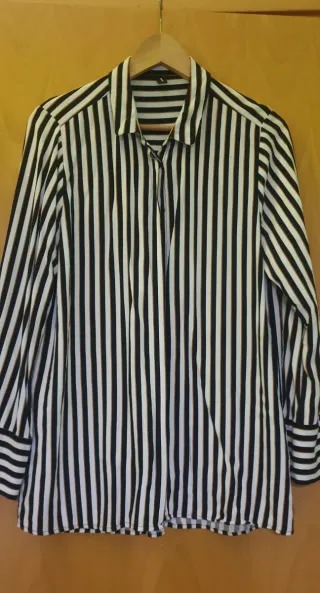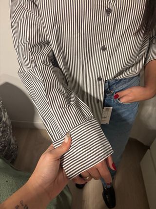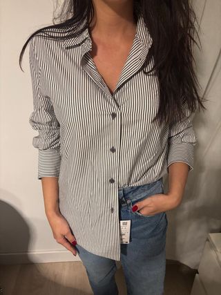 Camisa de rayas clásica de Zara. Un básico versátil para cualquier ocasión. nueva temporada con etiqueta talla bien - Diseño de rayas verticales. - Cuello camisero. - Cierre de botones.