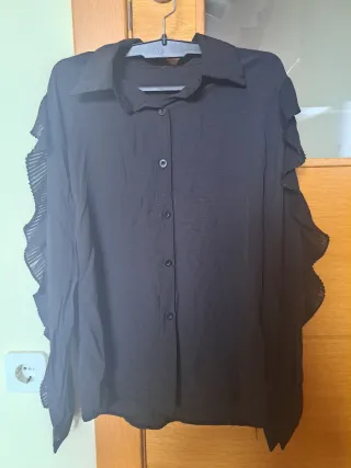 Camisa negra con volantes talla M