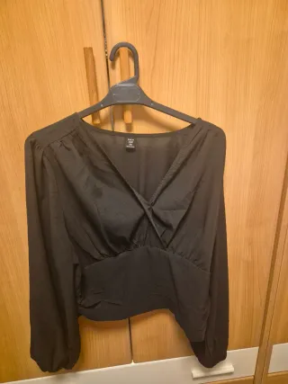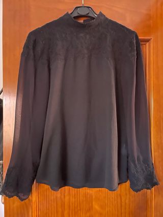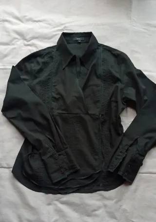 Elegante camisa negra de la marca Sfera. Puede ponerse en 🍁Talla M - Detalle de puntilla en los laterales. - Manga larga con puños abotonados. - Lazos para anudar atrás 🔆Sí necesitas información pídemela sin problema 🤗