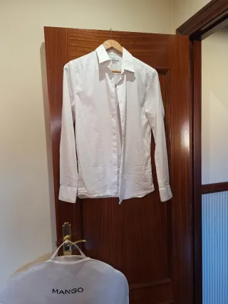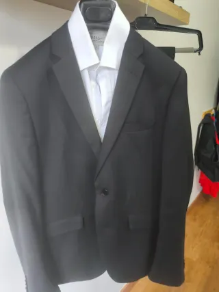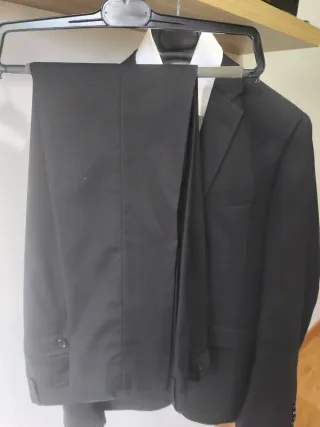 Conjunto de americana y pantalón de vestir, junto con una camisa. - Americana de color negro, talla 40. - Pantalón de vestir, talla 38. - Camisa de color blanco.. Sólo puesto una vez para la graduación