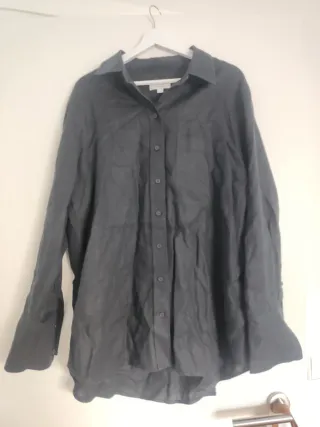 Camisa Zara Oversize Seda-Algodón Negra