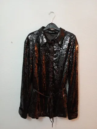 Camisa lentejuelas negra.
