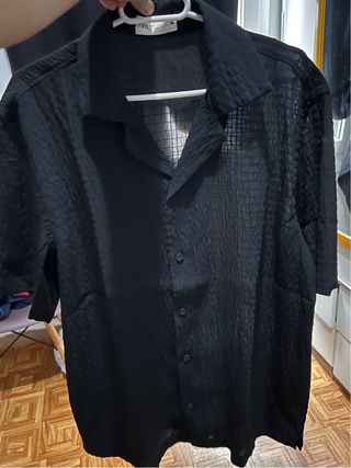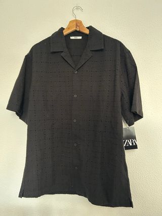 Camisa Zara Negra Texturizada Manga Corta