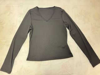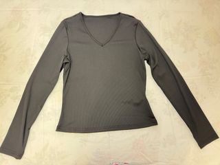 Camisa de manga larga con cuello en V. - Tejido acanalado. - Corte ajustado.