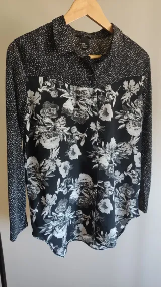 Camisa plateada y negra con estampado floral