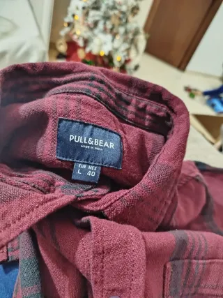 Camisa de cuadros de la marca Pull&Bear. - Diseño a cuadros en tonos rojos y negros. - Talla L.