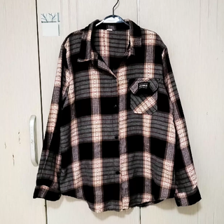 Camisa a cuadros negra y rosa