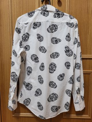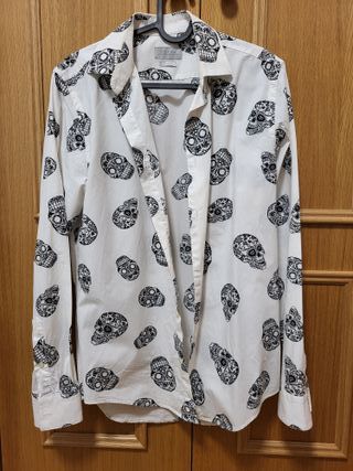 Camisa estampada. Calaveras. Elegante, vestir. Manga larga. Bicolor Marca: Zara Man Color: Blanco, negro Talla: S Corte: Slim Fit - Ajustada. Envío 24H