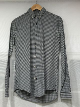 Camisa de manga larga con estampado de cuadros. - Diseño de cuadros blancos y negros. - Dos bolsillos en la parte delantera. - Cuello camisero. - Cierre de botones. Muy bien cuidado, cómo nuevo. Talla L-40 Pecho 50 cm×2 Largo 68 cm