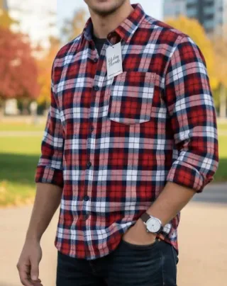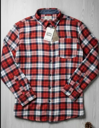 Camisa de cuadros con manga larga. - Tejido polialgodón. - Cuello con botones. - Diseño a cuadros en rojo y negro. - Logo bordado. - Prenda original. - Prenda lavada y planchada para su entrega. - Info en: 2lifesostenible@gmail.com