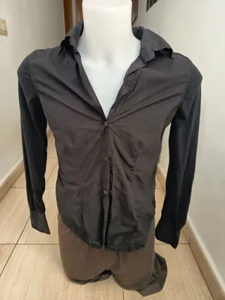 Camisa de manga corta de color negro. - Cuello clásico. - Cierre de botones. - Dos bolsillos en el pecho con botón. No hago envíos. 4 euros. No negociable.