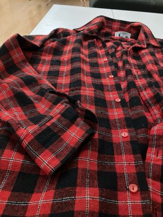Camisa de cuadros estilo leñador. - Diseño a cuadros en rojo y negro. - Cuello camisero. - Cierre de botones. - Manga larga.