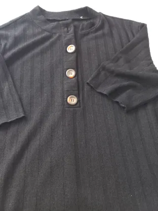 Camisa de manga larga con un diseño acanalado y cuello alto. Presenta tres botones decorativos en la parte frontal. - Tejido acanalado. - Cierre de botones. - Cuello alto.