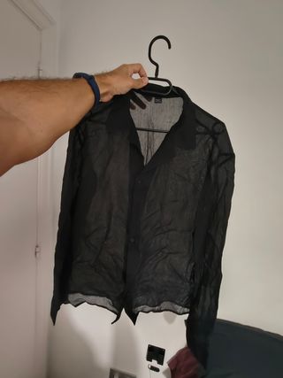 Camisa de botones con un diseño sexy transparente. - Manga larga. - Cuello camisero. - Cierre de botones. Lo siento porque en la foto está un poco arrugada, pero no tengo plancha.