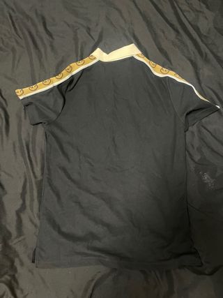 Polo de manga corta de la marca Gucci. - Diseño en color negro con detalles en beige en las mangas y cuello. - Cuello tipo polo con botones. - Cinta lateral con logo de la marca.