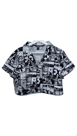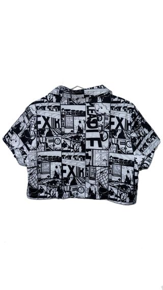 Camisa corta con un llamativo estampado de cómic en blanco y negro. ✔️Nuevo sin estrenar ♻️ ✔️Diseño de manga corta. ✔️Muy cómoda de llevar. 📦 Envío rápido 📩 DM si tienes dudas