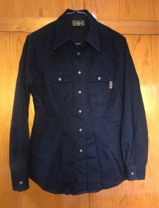 Camisa negra entallada, de puño ancho con 3 botones. En perfecto estado