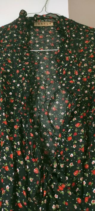 Preciosa blusa de la marca Pimkie. Es de color negro con estampado floral amarillo. - Tiene mangas acampanadas. - Cintura elástica. - Es ligera y transparente.