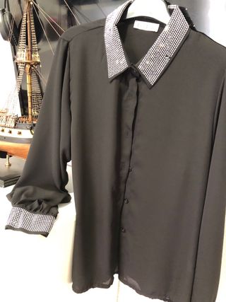 Camisa de fiesta negra con detalles brillantes