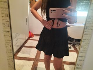 Preciosa falda corta negra con diseño de volantes, muy ligera y cómoda. Te da movimiento y un toque coqueto al andar. Queda suelta y no aprieta, ideal para verano, festivales o looks casuales. Combina genial con tops, camisas o bodys. Con muy poco uso. 📏 Talla M/38 💌 Pido más fotos o detalles sin problema.