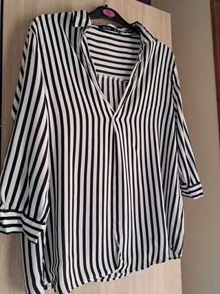 Dos camisas de chica sin usar y en perfecto estado. La negra es de tela india y talla 40 aunque es para una M. Otra color blanco y negro y talla S.