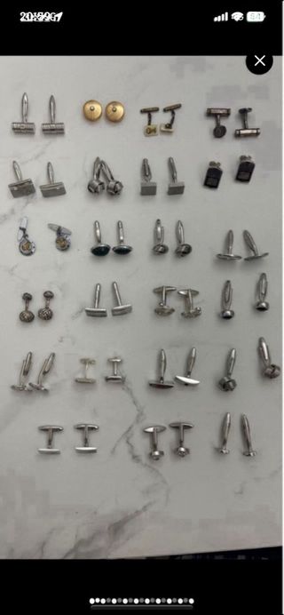 Lote de 22 pares de gemelos para camisas. A 5€ cada pareja de gemelos. También se puede hacer precio por todos. - Diseños variados en tonos plateados y negros. - Ideales para complementar tu atuendo formal.