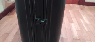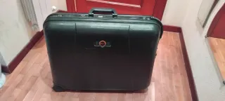 Maleta de viaje resistente y espaciosa. Medidas 60cm de largox 50cm de alto x 25cm de ancho. Tiene un cierre lateral roto pero no impide su cierre. Por dentro esta como nueva con dos perchas para camisas y un departamento interior con Cremallera - Diseño rígido. - Asa superior. - Ruedas para facilitar el transporte. - Candado de combinación integrado.
