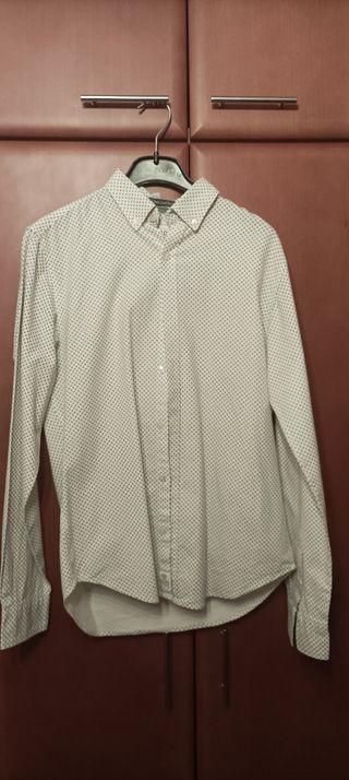 Buena camisa de manga larga con un estampado elegante en blanco y negro. Es una prenda muy versátil y cómoda. Talla L Slimfit - Diseño con estampado de figuras geométricas. - Corte clásico.