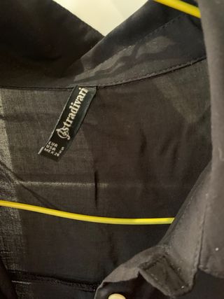 Elegante camisa de rayas verticales en negro y rayas trasparentes con cuello negro. Puesta solo en dos ocasiones .Es una prenda de vestir muy estilosa. - Cierre de cremallera. - Cuello tipo camisa. - Manga larga. - Diseño entallado.