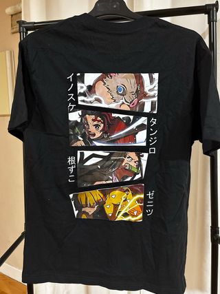 Camisa negra con un diseño estampado en el pecho. - Diseño inspirado en anime. - Cuello redondo. - Manga corta.
