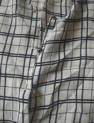 Camisa de mujer con un llamativo estampado. Es talle S, pero oversize. Yo soy talle L y me anda perfecto. - Diseño abstracto en tonos beige y negro. - Cuello camisero. - Cierre de botones. - Dos bolsillos en el pecho.