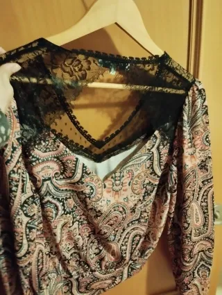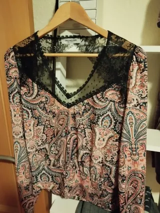 Camisa Morgan Paisley Encaje Negro Rosa Talla XS