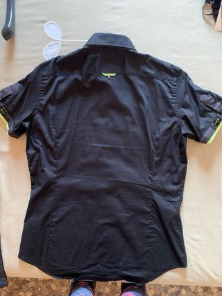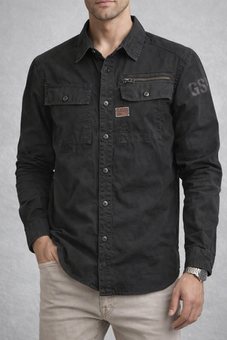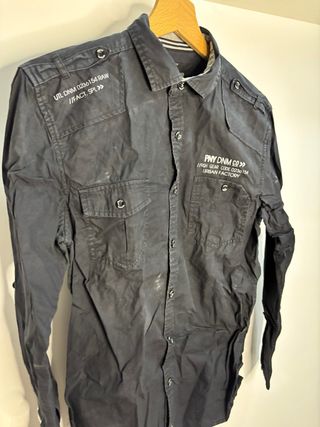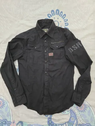 Camisa de hombre de la marca G-Star Raw, manga larga y color negro. Diseño tipo utilitario con dos bolsillos delanteros, uno de ellos con cremallera, botones frontales y detalles estampados discretos en manga y espalda. Estado usado, sin rotos ni descosidos. Tejido resistente, ideal para entretiempo o uso casual. Gracias por echarle un ojo, si necesitas algo más me dices. Se vende tal cual se ve en las fotos. Tengo buenas valoraciones y respondo rápido. Suelo enviar el mismo día si me cuadra. Soy serio con las ventas, lo q