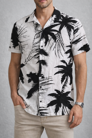 Camisa de hombre Terranova, talla M, tejido 100% viscosa. Estampado en blanco y negro con palmeras, muy ligera y cómoda. Estado bueno, con el uso normal visible en las fotos. Si te encaja el estilo, adelante, es muy fresquita. Gracias por echarle un ojo, cualquier duda me dices. Se vende tal cual se ve en las fotos. Tengo buenas valoraciones y respondo rápido. Suelo enviar el mismo día si me cuadra. Soy serio con las ventas, lo que ves es lo que hay. Si necesitas fotos extra, las subo sin problema. camisa terranova viscosa hombre verano