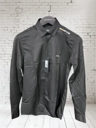 Camisa de manga larga para hombre. - Color negro. - Cuello con botones. - Logo de la marca en la manga y en el pecho. - Hecho en Turquía