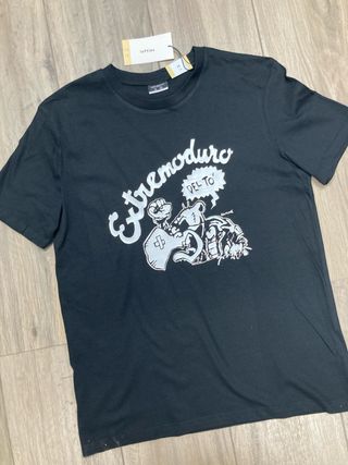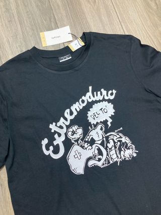 Camiseta negra con estampado de Extremoduro. TALLA M - Diseño gráfico llamativo. - Estampado DEL TO con personaje. - Firma RAMONE en el diseño. VINILO DE CORTE NUEVA CON ETIQUETAS MARCA LEFTIES MAN