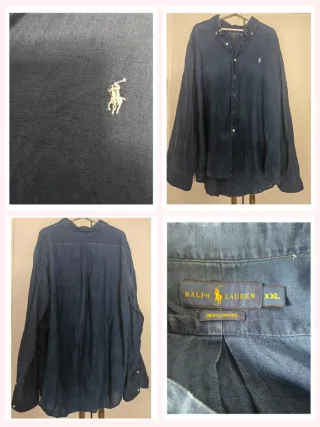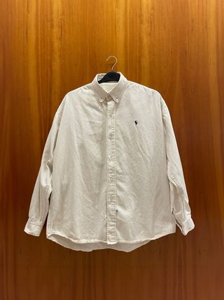 Camisa Polo Ralph Lauren original de algodón Oxford 100%. Color blanco roto / crema. En muy buen estado, recién lavada. Único detalle: pequeño hilo suelto junto al logo (se aprecia en una foto), no afecta al uso ni a la estética. Talla 20 (talla numérica antigua de Polo). Por medidas, equivale a una XL de ancho, con largo algo más corto (ver medidas). 🔹 Medidas: • Hombro a hombro: 50 cm • Sisa a sisa: 62 cm • Largo: 65 cm Camisa clásica, cómoda y de buena calidad, ideal para look casual o arreglado.