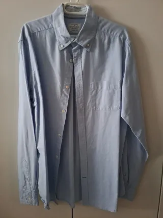 Vendo camisa de hombre de la marca Springfield, modelo Original Oxford. Es una prenda básica, muy versátil y de un tejido resistente que aguanta genial el día a día. Marca: Springfield. Modelo: Original Oxford. Corte: Regular Fit. Talla: XL. Color: Azul / Gris claro con textura Oxford. Detalle: Logo clásico del árbol bordado en el pecho. Estado: En buen estado, sin roturas ni manchas. Ideal para llevar abierta con una camiseta debajo o más formal con unos chinos.