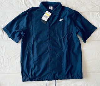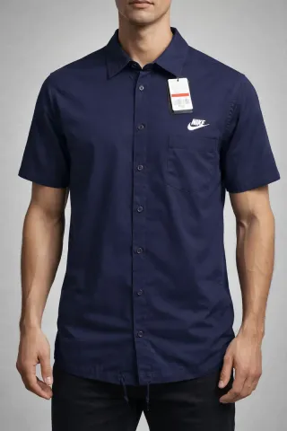 SOLO ENVIO Camisa de manga corta de la marca Nike, modelo Club Oxford. Talla S Diseño: Presenta un cuello estructurado, cierre frontal de botones y un práctico bolsillo en el pecho con el logotipo de Nike bordado. Color: El tono mostrado es un azul marino oscuro, a menudo denominado por la marca como "Obsidian". Material: Suele estar confeccionada en una mezcla de algodón (a veces con un toque de elastano para mayor elasticidad) o poliéster reciclado.