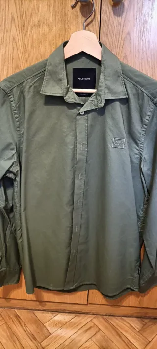 Camisa de manga larga de la marca Polo Club en color verde oliva. Oxford Collection Muy poco uso - Cuello clásico. - Cierre de botones. - Detalle de logo en el pecho.
