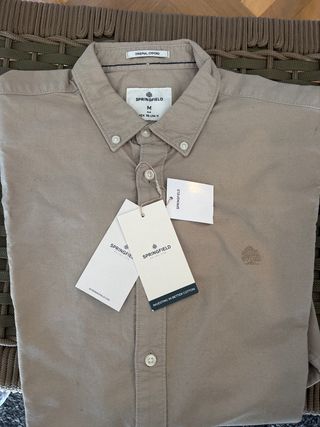 Camisa de manga larga de la marca Springfield en color beige.. - Cuello tipo Oxford. - Cierre de botones. - Logo bordado en el pecho.