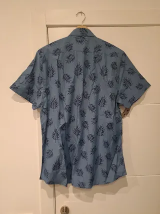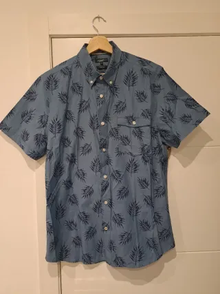 Camisa de manga corta con un diseño veraniego. - Estampado de hojas en contraste. - Cuello tipo button-down. - Bolsillo en el pecho. - Está nueva, nunca se ha usado. No tiene etiquetas.