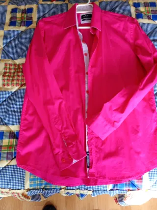 Camisa de manga larga en un vibrante tono rosa. Presenta un diseño moderno con detalles en el cuello y puños. Talla 44 - Cuello camisero clásico. - Puños con botones. - Cierre frontal de botones.
