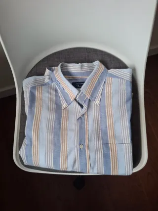 Camisa de manga larga con rayas verticales azules y blancas. Talla 18/20 años o talla XS hombre. - Cuello camisero. - Cierre de botones. - Logo bordado en el pecho.