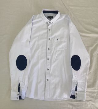 Usada un par de veces. Camisa de manga larga con un diseño clásico y detalles modernos. - Cuello abotonado. - Puños con botones. - Parches en los codos. - Pequeño bordado en el pecho.