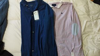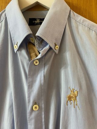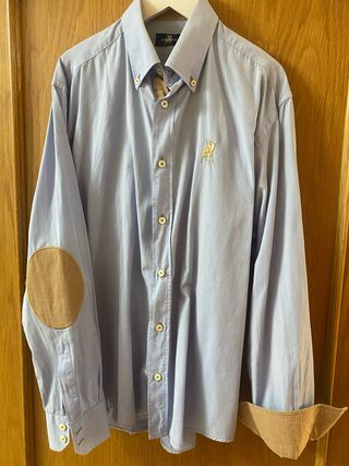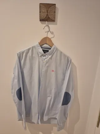Camisa de manga larga con un diseño clásico, de algodón, en muy buen estado. Coderas de color azul claro. Cuello con botones. Logo de la marca bordado en el pecho. Entrega en metro Las Tablas L10 o Plaza de Castilla. Envío a toda España con Wallapop envíos.
