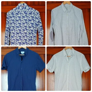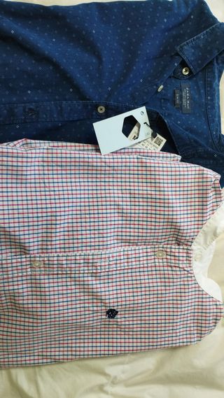 Camisas Zara Slim Fit de la talla m. Hay 2 de manga corta y 2 de manga larga. Si quieres vértelas puestas, podemos quedar en una tienda y te las pruebas. Medidas: cm sisa y cm alto. - Camisa de manga larga con estampado de palmeras. - Camisa de manga larga a rayas con coderas. - Camisa de manga corta azul con micropuntos. - Camisa de manga corta blanca con microestampado.