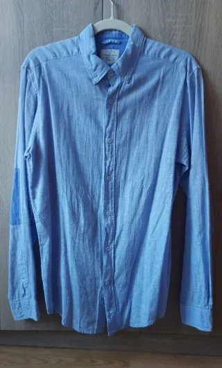 Camisa azul Pull & Bear. Talla L. Con coderas y botones ocultos. Cuello redondo. Precio final. Más en el perfil.