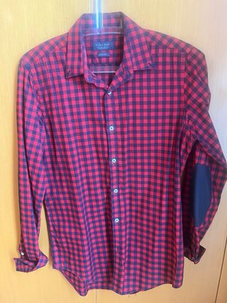 Camisa de Zara Man con un diseño a cuadros y coderas. - Diseño a cuadros en tonos verdes y burdeos. - Coderas de material diferente para un toque distintivo. - Cierre de botones. - Dos bolsillos en el pecho.